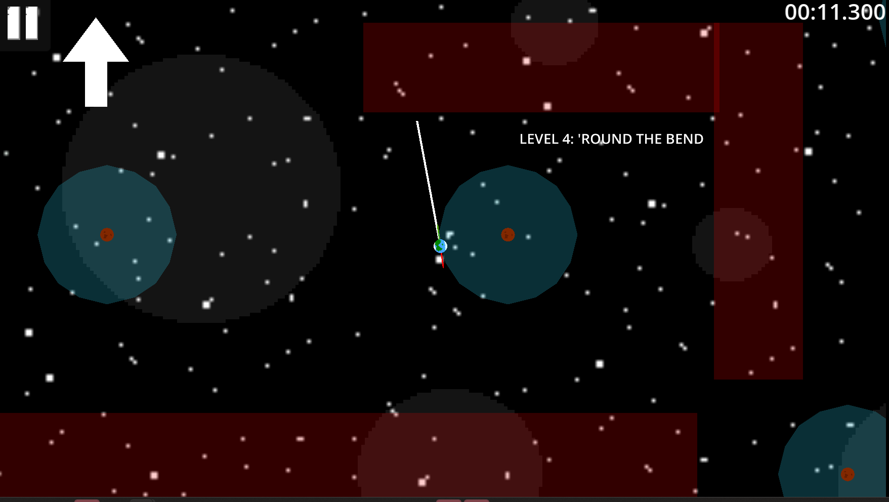 Use the forces of gravity and time to loop around planets to get to the goal.